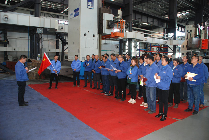 為了不斷強化黨員牢記光榮傳統(tǒng),弘揚星火精神,使廣大黨員在“不忘初心、牢記使命”主題教育中堅定信念、立足崗位,做好本職工作,為企業(yè)實現(xiàn)脫困發(fā)展目標(biāo)做出自己的貢獻(xiàn),星火機床公司黨委工作部組織集團機關(guān)黨支部、星火機關(guān)黨支部和生產(chǎn)物資黨支部等3個黨支部的60多名黨員,前往公司工業(yè)園數(shù)控裝配分廠重型車間公司展廳,開展愛國、愛企、愛崗教育。黨旗指引方向,黨旗引領(lǐng)隊伍。集團機關(guān)黨支部等3個黨支部的黨員,緊跟黨旗來到公司展廳前集合。黨委工作部部長、集團機關(guān)黨支部書記姚保忠對開展主題黨日活動的意義作了說明,帶領(lǐng)大家學(xué)習(xí)了習(xí)近平總書記在慶祝中華人民共和國成立70周年大會上的講話。隨后,參加主題黨日活動的黨員參觀了公司展廳,姚保忠對展廳中反映公司歷史、公司榮譽、產(chǎn)品變化、領(lǐng)導(dǎo)關(guān)懷和社會責(zé)任、先進(jìn)集體的各個版塊做了詳細(xì)講解。