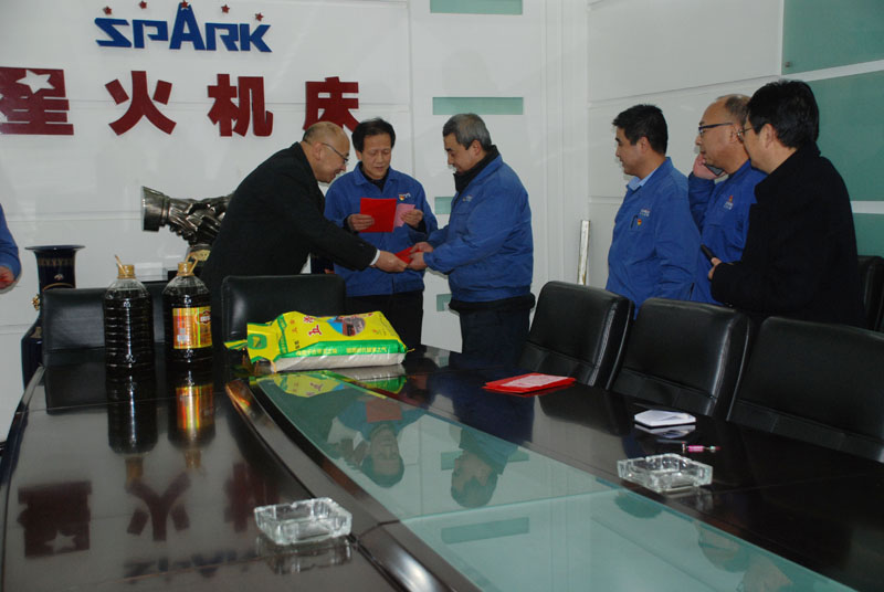 在星火機床公司小會議室,第四慰問組領隊、市國資委副主任江愛民,市國資委企業人事科科長王雙喜為優秀黨員、困難黨員、老黨員發放了慰問品及慰問金,希望通過慰問活動,進一步激勵黨員干部不忘初心、牢記使命,提振干事創業的精氣神。并提前祝大家春節快樂,身體健康。