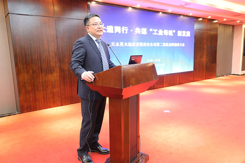 星火機(jī)床集團(tuán)公司黨委書記、董事長(zhǎng)蔣保權(quán)在大會(huì)上致辭,對(duì)各位優(yōu)秀經(jīng)銷商相聚天水,共謀發(fā)展表示熱烈歡迎。他向與會(huì)人員介紹了企業(yè)基本情況、近兩年發(fā)展變化、項(xiàng)目建設(shè)和發(fā)展規(guī)劃后說(shuō),企業(yè)與經(jīng)銷商是魚水關(guān)系,也是一家人,希望大家攜起手來(lái),共同努力,共同發(fā)展。