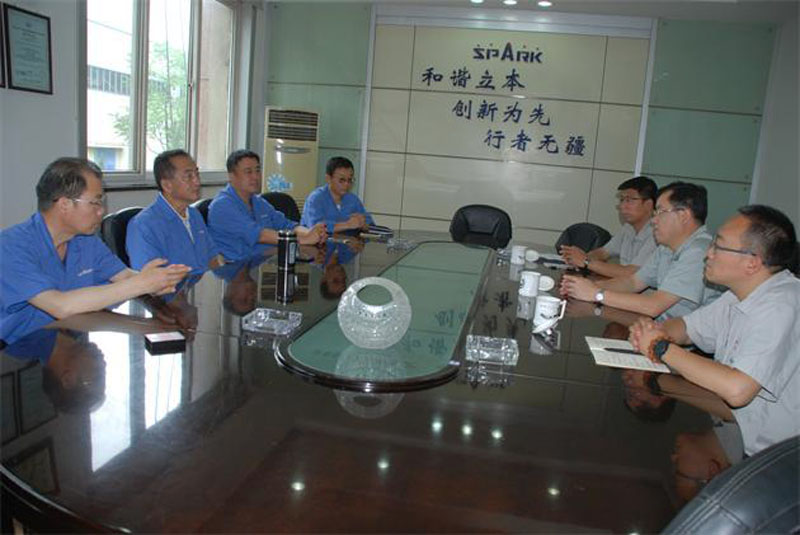雙方在星火機床公司接待室進行了親切會談。何克鴻董事長介紹了海林公司近幾年發展情況、企業現狀等,希望增進溝通交流,借鑒星火工業園建設國際一流廠房的經驗,為即將開工的2萬平方米的海林新廠房建設提供幫助。李維謙董事長介紹了企業近況、市場情況等,在談到星火收購國外幾家企業時他說,星火國際化道路走的比較早,二十幾年前去國外洽談合作,都沒有人接待,現在外國人搶著和我們做生意,可以說,中國企業與國外企業的合作已經由過去的涇渭分明變為水乳交融。他還為海林中科國際化合作提出了建議。
