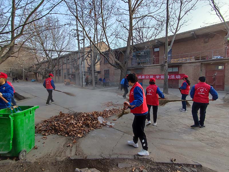 此前,為了解決職工家屬反映的生活區個別樓宇因樹木過密、過大,影響底層樓房居民采光的問題,物業公司本著愛護樹木的原則,動用了2臺挖掘機、2臺運輸車輛,將稠密遮光樹種完整及時的移栽到工業園廠房周邊的閑置空地,達到了增綠、美化的效果。3月5日,為響應學雷鋒號召,機關黨支部干部職工主動清掃辦公區周邊落葉,清理衛生區域雜草和道路排洪溝淤泥。