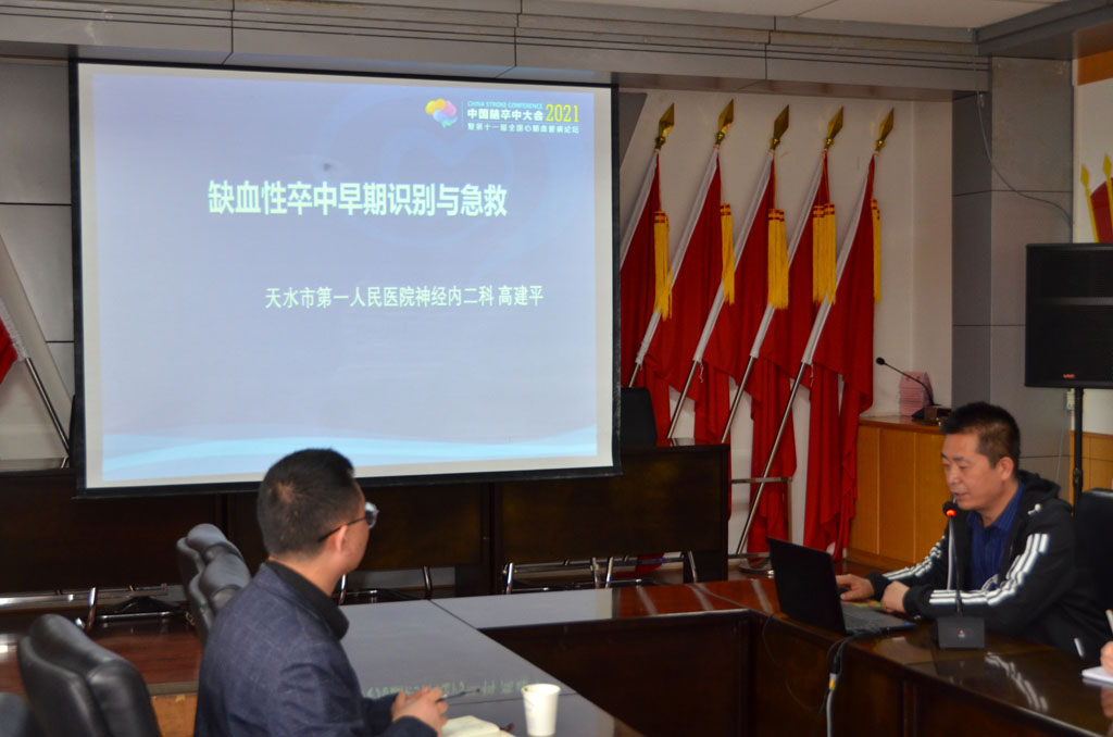 天水市腦卒中篩查和干預項目辦主任、市第一人民醫院醫務科科長李晶文主持啟動儀式。市腦卒中篩查和干預項目主管馮彩忠解讀2023年項目工作要求,市第一人民醫院神經內二科副主任醫師高建平作腦卒中早期識別與急救知識培訓,省項目辦工程師牛偉杰做信息采集及上傳流程培訓。