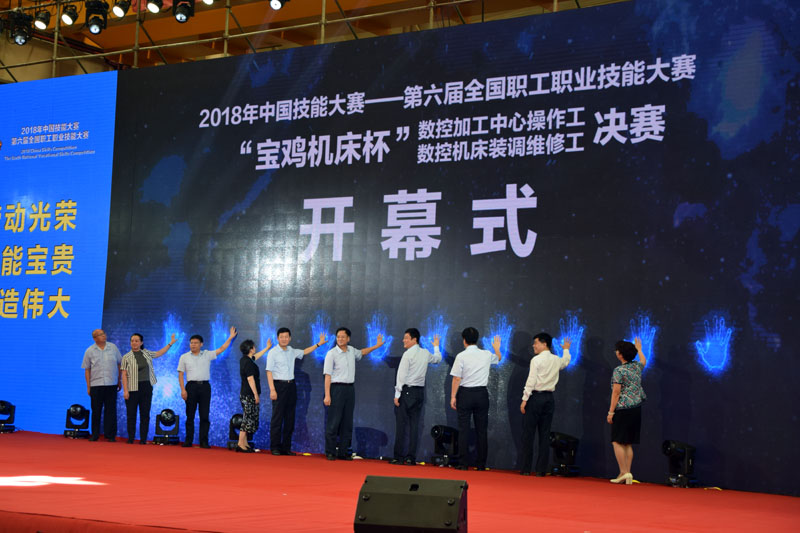 此次比賽自9月3日開始至9月6日結束,數控加工中心操作工比賽有27支代表隊參賽,數控機床裝調維修工比賽有26支代表隊參加比賽。9月4日上午,2018年中國技能大賽—第六屆全國職工職業技能大賽“寶雞機床杯”數控加工中心操作工、數控機床裝調維修工決賽開幕式當天,中華全國總工會副主席、書記處書記焦開河,陜西省人大常委會副主任、省總工會主席郭大為,陜西省副省長陳國強,中華全國總工會勞動和經濟工作部部長王俊治,寶雞市委副書記、市長惠進才,陜西省總工會常務副主席、黨組副書記張仲茜,中華全國總工會網絡工作部副部長關明,工業和信息化部裝備工業司副巡視員石靖敏,中華全國總工會勞動和經濟工作部副部長姜文良等領導和大賽組委會專家、裁判、特邀嘉賓、技術指導及參賽選手等500余人參加了開幕式。
