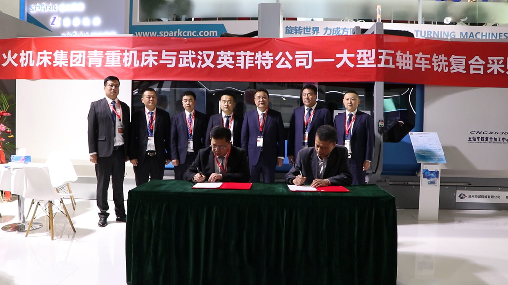 星火機床集團青重機床在展會現場與客商簽訂大型五軸車銑復合采購項目合同