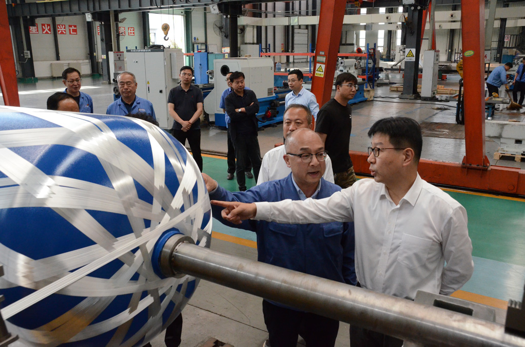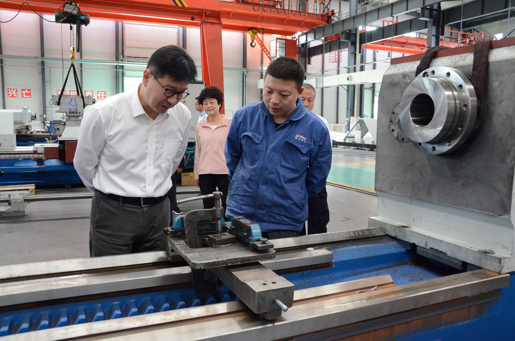 調研中,張錦剛先后參觀了星火機床公司研發的數控纏繞機床、萬能數控磨床、大型斜床身數控車床、五軸聯動數控車床,了解了重型數控車床、長規格機床的技術水平、運用行業,數控纏繞機床的生產方式、在軍品生產中的應用效果和用戶評價,以及數控產品采用的系統軟件品牌,觀看了星火職工以傳統的手工刮研方式保證產品精度的操作等。
