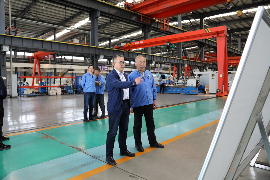 在裝配車間,趙錦銘向王虎中一行介紹了企業的歷史沿革、發展變化,匯報了企業科技創新、市場占有率,以及一季度工業產值、項目建設進展等。