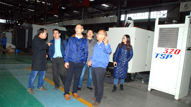 在星火機床公司黨委副書記蔣俊等陪同下,考察組一行首先參觀了星火工業園裝配制造分廠,參觀過程中,蔣俊介紹了星火機床公司大型重車、臥車、斜車等主要產品的性能、用途、市場情況等。