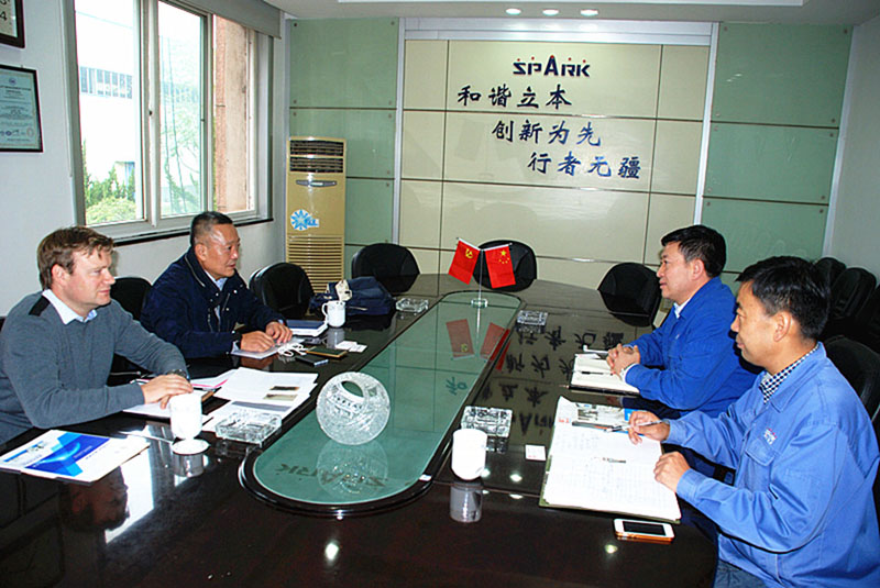 10月16日,德國一家貿(mào)易公司采購總經(jīng)理喬慶,美國公司總經(jīng)理丹尼爾一行來星火機(jī)床公司洽談強(qiáng)化長期合作,加快交貨進(jìn)度等事宜。星火機(jī)床集團(tuán)公司總經(jīng)理劉勝,銷售部副部長宋建文與克努特客商進(jìn)行了座談。