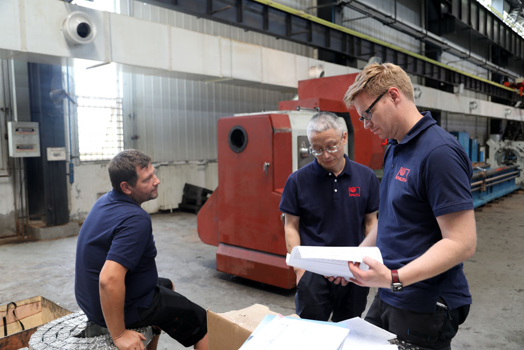 在星火工業(yè)園大型產(chǎn)品裝配車間,客商一行在公司有關(guān)技術(shù)人員陪同下對兩臺產(chǎn)品運行穩(wěn)定性、可靠性以及產(chǎn)品精度進行了檢驗,并就產(chǎn)品相關(guān)參數(shù)的細節(jié)問題與技術(shù)人員進行了交流。經(jīng)過檢驗,客商對公司產(chǎn)品給予了肯定,認為甘肅星火產(chǎn)品質(zhì)量優(yōu)異,企業(yè)實力雄厚。