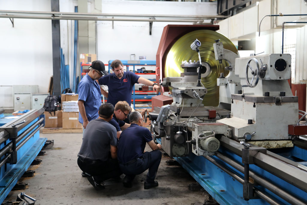 911日下午,羅馬尼亞客商一行2人在德國克努特公司銷售經(jīng)理的陪同下來到甘肅星火智能數(shù)控機床有限公司驗收兩臺CW61160/8m臥式車床產(chǎn)品。甘肅星火智能數(shù)控機床有限公司銷售部副部長高瑞東及相關(guān)技術(shù)人員接待客商一行并陪同驗收產(chǎn)品。