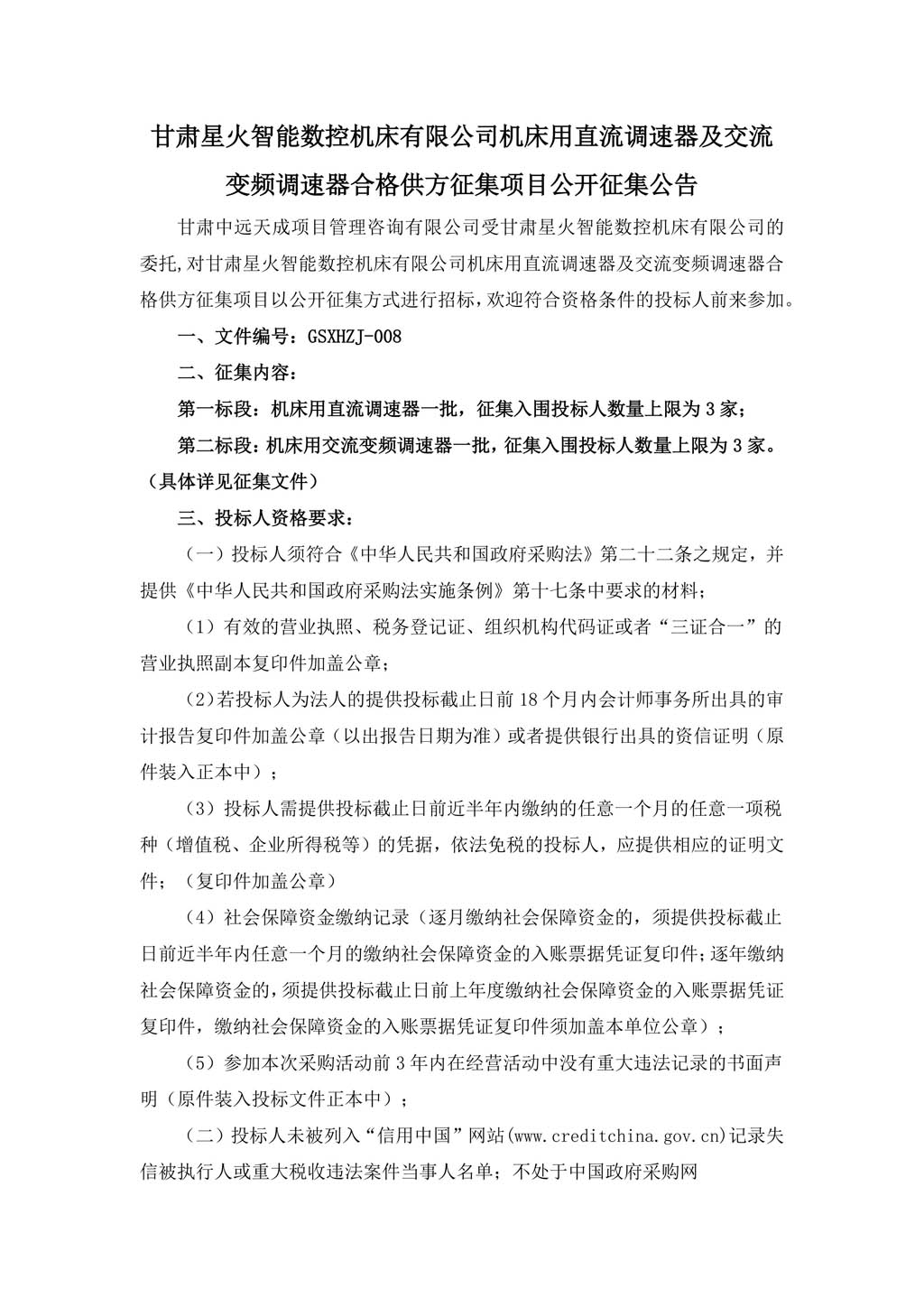 甘肅星火智能數控機床有限公司機床用直流調速器及交流變頻調速器合格供方征集項目公開征集公告
