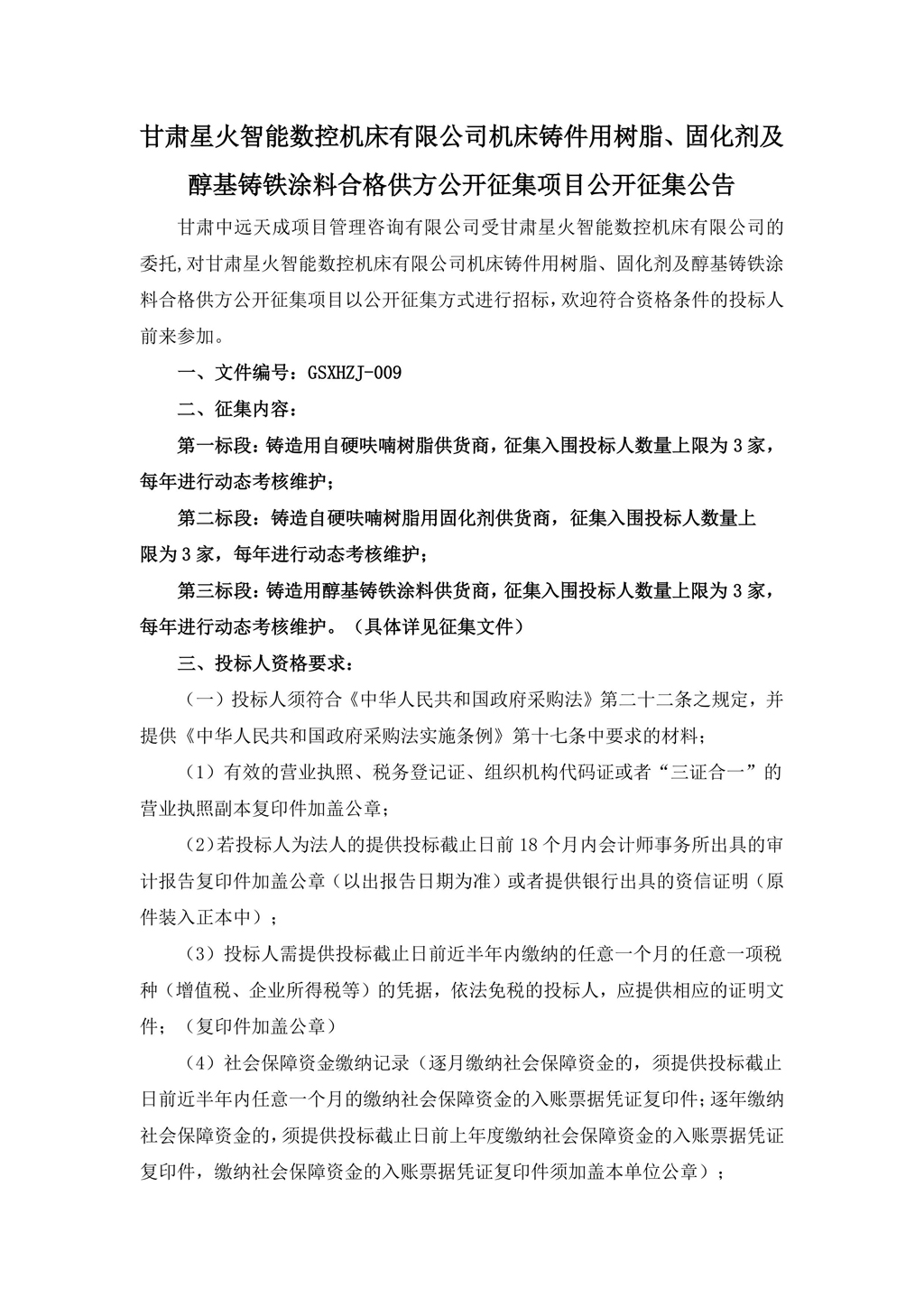 甘肅星火智能數(shù)控機床有限公司機床鑄件用樹脂、固化劑及醇基鑄鐵涂料合格供方公開征集項目公開征集公告